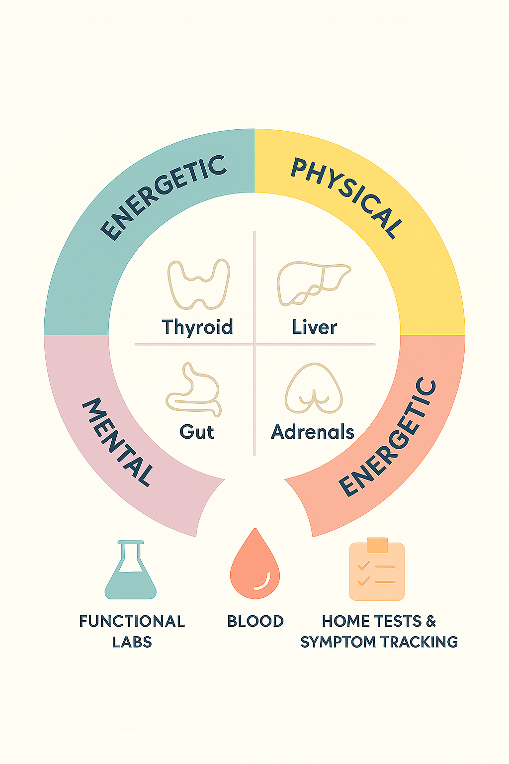 • Personalized, not generic — We identify your highest-stress system (adrenals, liver, thyroid, or gut) and start there.